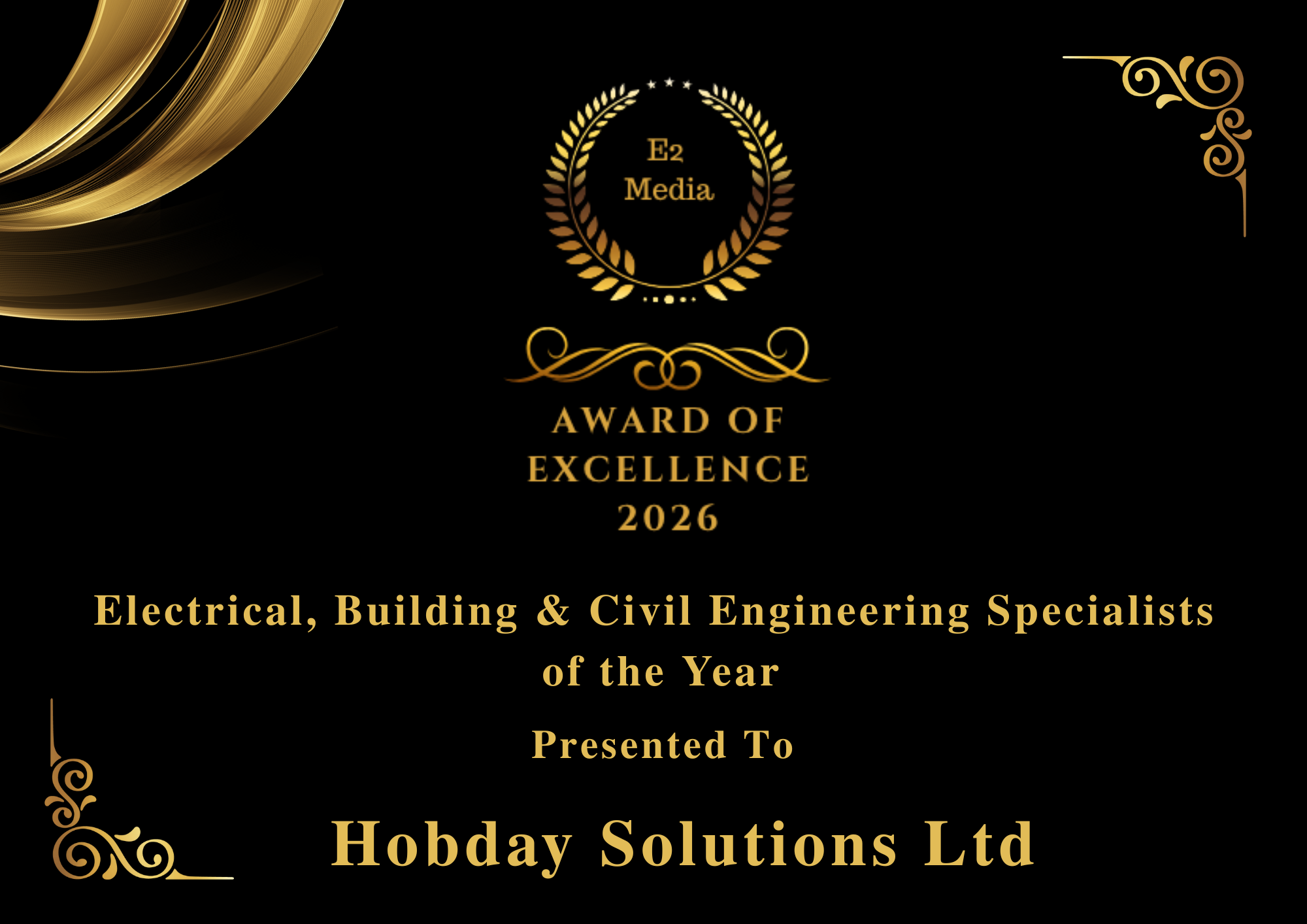 We have won an award! We have had the pleasure of receiving an award from E2 Media for the Award of Excellence for Electrical, Building & Civil Engineering Specialist of the Year. It is an honour to receive this award and appreciate that it wouldn’t be possible without the hard work and dedication of our Directing Manager, Dave Hobday as well as our wonderful staff! Working within their own sectors but then pulling together as a team when needed most.